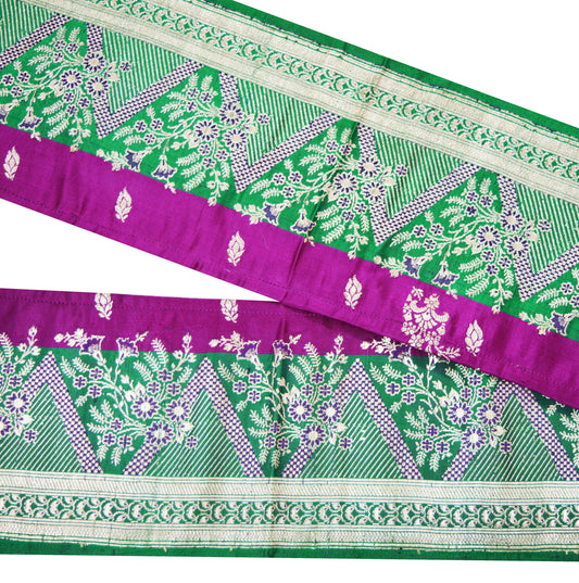 Indian Vintage Sari Border Purple & Green Woven Banarasi Brocade Trim Craft Sewing Recycled Sari Border Silver Zari Satin Silk Crafting