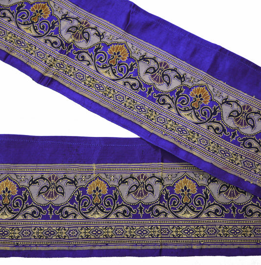 Indian Vintage Sari Border Blue Woven Brocade Trim Craft Sewing Recycled Sari Border Satin Silk Home Decor Crafting Floral Design
