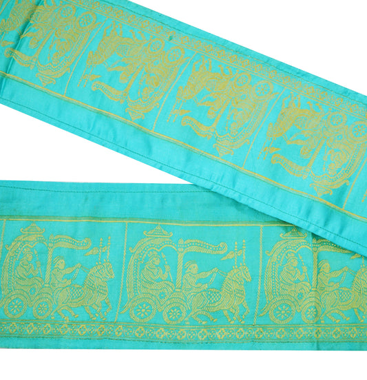 Indian Vintage Sari Border Green Hand Woven Baluchari Indian Craft Trim Lace Ribbon Recycled Indian Sari Border Home Decor Gift Wrapping
