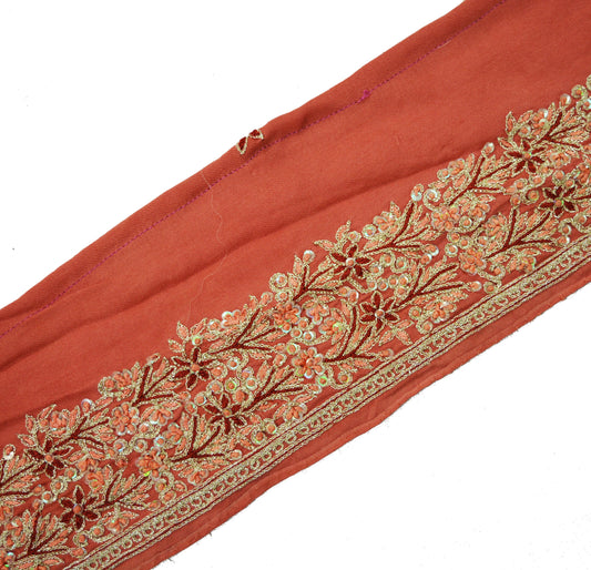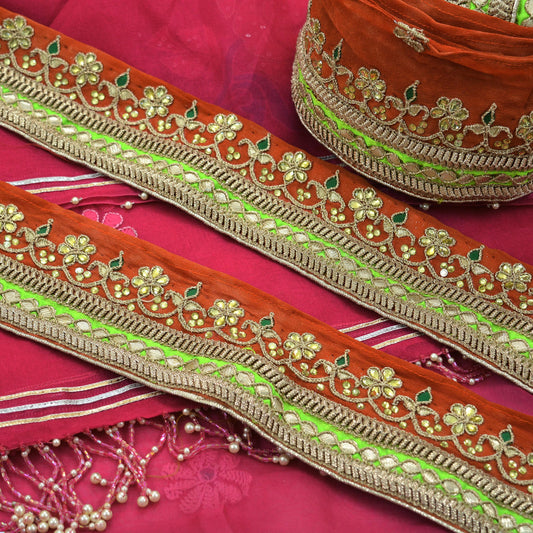 Indian Vintage Orange Sari Border Hand Embroidered Indian Craft Trim Lace Sewing Pure Georgette Silk Ribbon Recycled Sari Border Zardozi