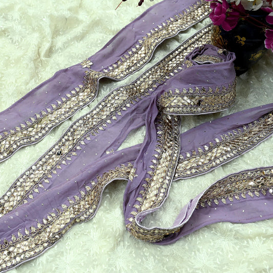 Indian Vintage Purple Border Hand Embroidered Gota Patti Craft Trim 1Yd Lace Sewing Sari Ribbon Zardozi/Dabka Zari Decor Gift Wrapped