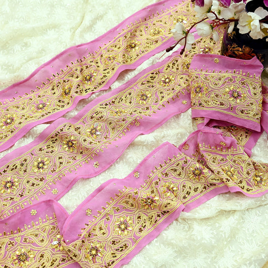 Indian Vintage Pink Border Hand Embroidered Craft Trim 1yd Lace Sewing Pure Georgette Silk Ribbon Recycled Sari Border Decor Gift Wrapped