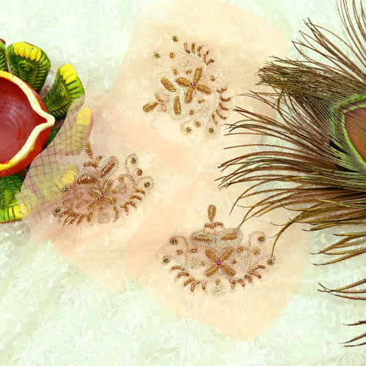Indian Vintage 3 Pcs Rare Appliques Peach Georgette Applique VERY OLD ANTIQUE Vintage Embroidered Snippets Remnants Craft Journals