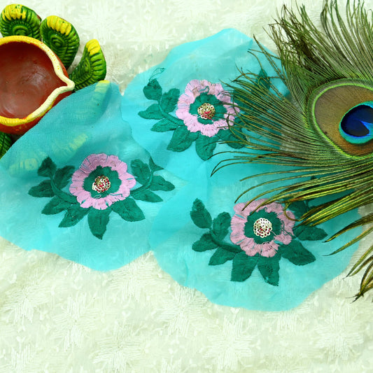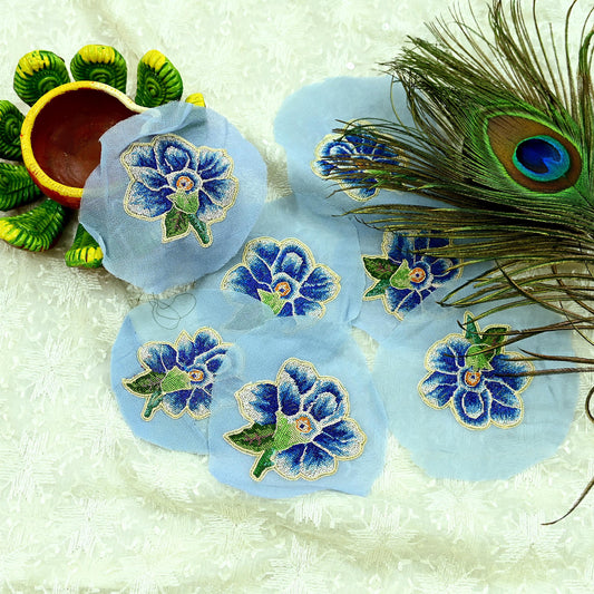 Indian Vintage 7 Pcs Rare Appliques Blue Georgette Applique VERY OLD ANTIQUE Vintage Embroidered Snippets Remnants Craft Journals