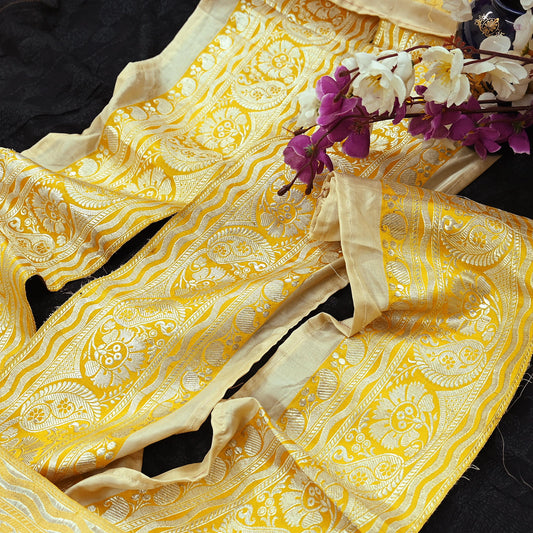 Indian Vintage Yellow Sari Border Woven Banarasi 1yd Trim Craft Sewing Recycled Sari Border Silver Zari Pure Silk Decor Crafting