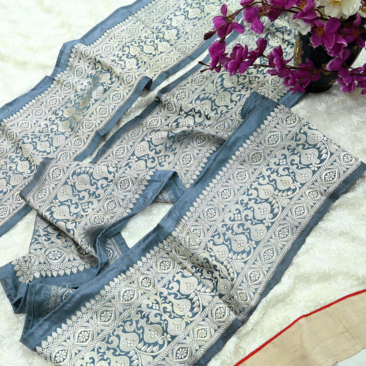 Indian Vintage Gray Sari Border Woven Banarasi 1yd Trim Craft Sewing Recycled Sari Border Silver Zari Pure Silk Home Decor Crafting