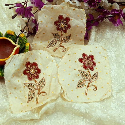 Vintage 3 Pcs Appliques Ivory Sari Pure Silk Applique VERY OLD ANTIQUE Vintage Hand Embroidered Snippets Remnants Craft Journals India Rare