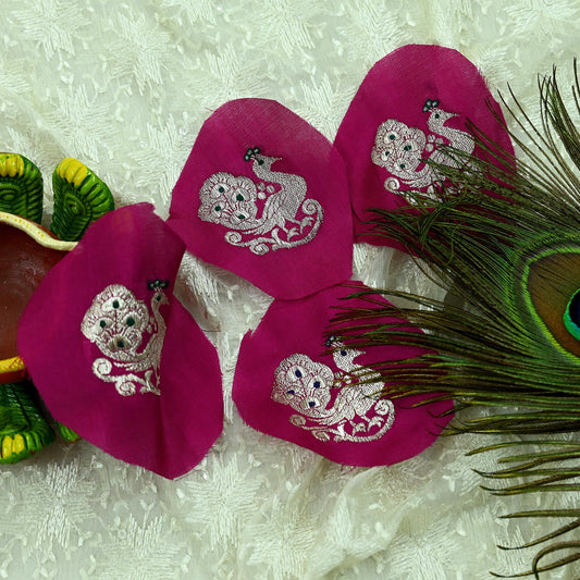 Vintage 4 Pcs Appliques Pink Sari Pure Silk Applique VERY OLD ANTIQUE Vintage Hand Woven Snippets Remnants Craft Journals India Rare