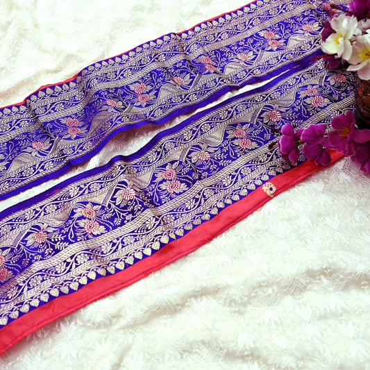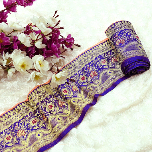Indian Vintage Purple & Peach Sari Border Woven Banarasi 1yd Trim Craft Sewing Recycled Sari Border Zari Pure Silk Home Decor Crafting