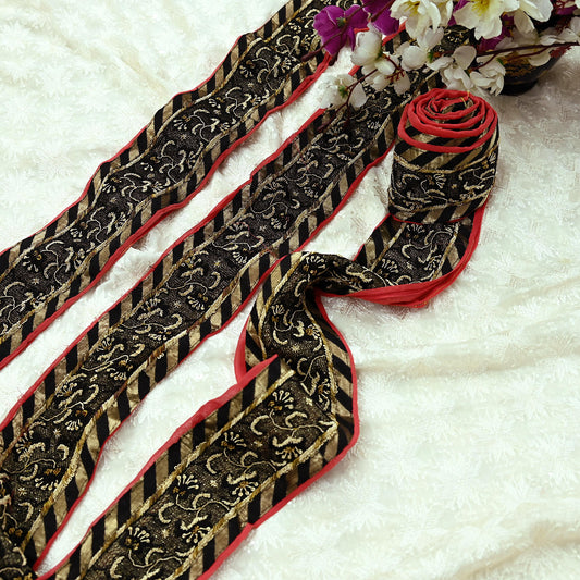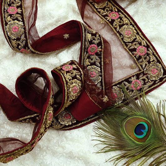 Indian Vintage Maroon Sari Border Hand Embroidered Craft Trim Lace Sewing Sari Ribbon Velvet 1yd Dress making Dress Designing Decor Dabka