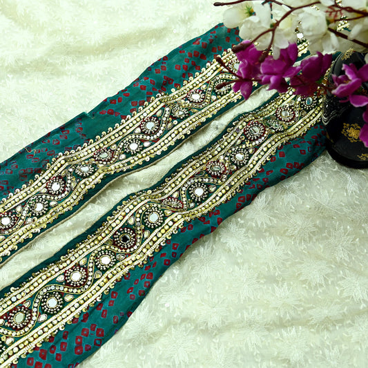 Indian Vintage Green Sari Border Hand Embroidered Bandhani 1Yd Craft Trim Lace Sewing Sari Ribbon Pure silk Zardozi/Dabka Zari Decor