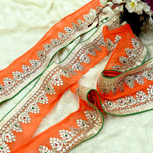 Indian Vintage Orange Border Hand Embroidered 1Yd Gota Patti Craft Trim Lace Sewing Sari Ribbon Zardozi/Dabka Zari Decor Gift Wrapped