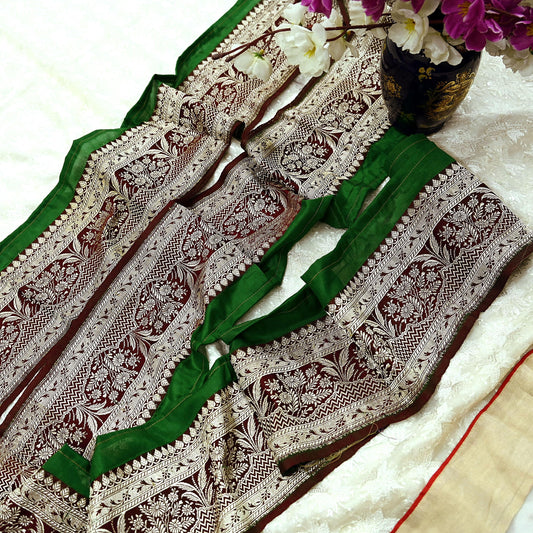 Indian Vintage Maroon & Green Sari Border Woven Banarasi 1yd Trim Craft Sewing Recycled Sari Border Zari Pure Silk Home Decor Crafting
