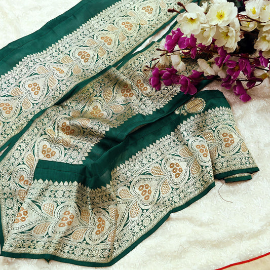 Indian Vintage Green Sari Border Hand Embroidered Craft Trim 1Yd Lace Sewing Sari Ribbon Pure silk Zardozi/Dabka Zari