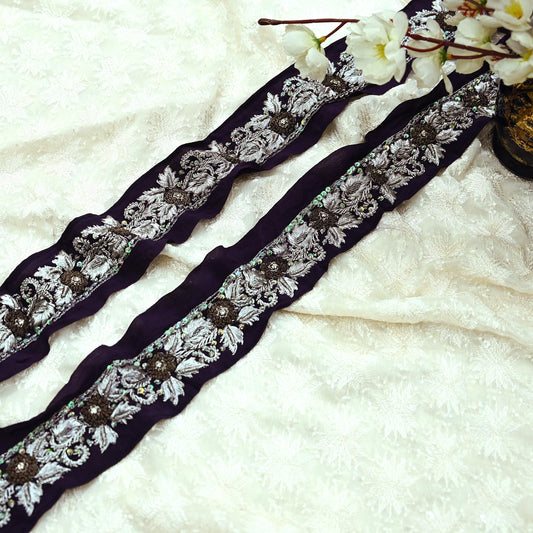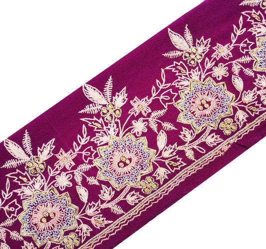 Indian Vintage Purple Sari Border Hand Embroidered 1ydCraft Trim Lace Sewing Sari Ribbon Pure Crepe silk Zardozi/Dabka Zari