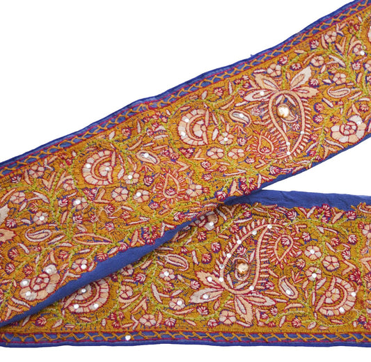 Indian Vintage Blue Sari Border Hand Embroidered Indian Craft Trim Lace Sewing Sari Ribbon Pure Crepe silk Sequins