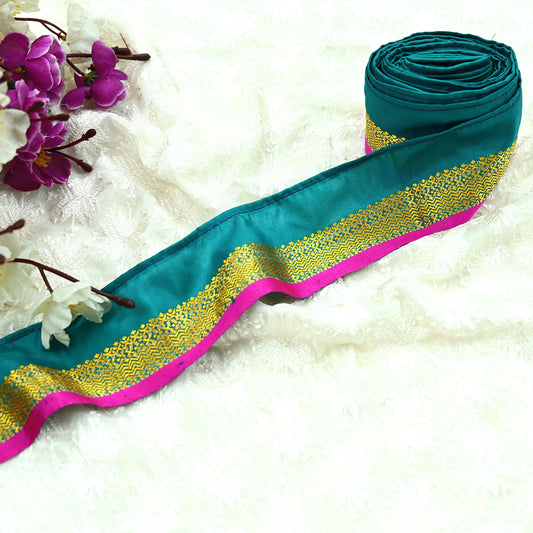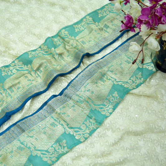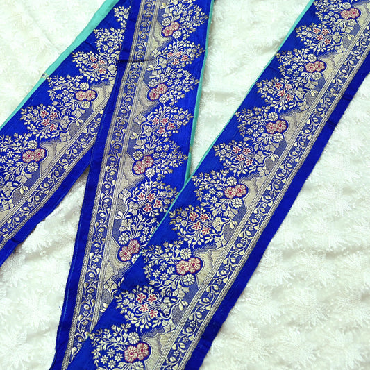 Indian Vintage Sari Border Blue & Green Woven Banarasi Trim Craft 1yd Sewing Recycled Sari Border Zari Pure Silk Home Decor Crafting