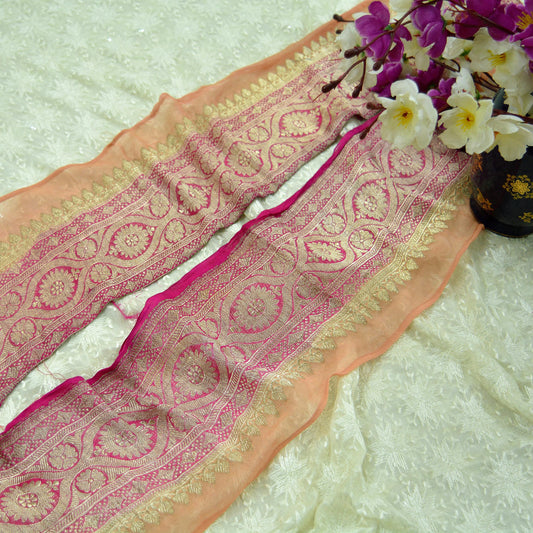 Indian Vintage Sari Border Pink & Peach Woven Banarasi Trim Craft 1yd Sewing Recycled Sari Border Zari Pure Silk Home Decor Crafting