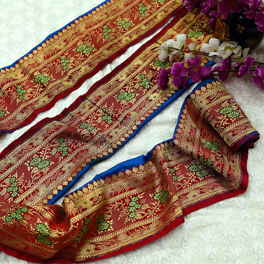 Indian Vintage Red & Blue Sari Border Woven Banarasi 1yd Trim Craft Sewing Recycled Sari Border Zari Pure Silk Home Decor Crafting