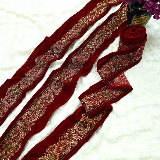 Indian Vintage Red Sari Border Hand Embroidered Craft Trim Lace Sewing Sari Ribbon Velvet 1yd Dress making Dress Designing Decor Dabka