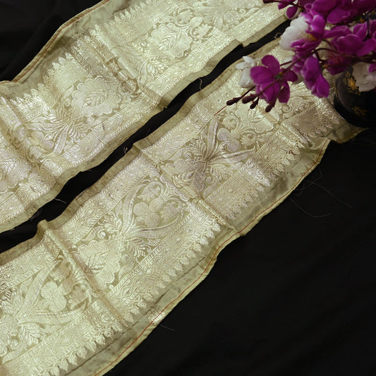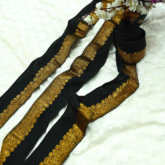 Indian Vintage Black Sari Border Woven Banarasi Brocade Trim Craft Sewing Recycled Golden Zari Pure Silk Home Decor Crafting Dress Making