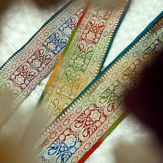 Indian Vintage Multi Sari Border Woven Banarasi 1yd Trim Craft Sewing Recycled Sari Border Golden Zari Pure Silk Home Decor Crafting
