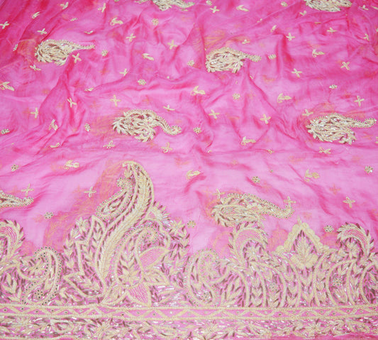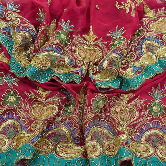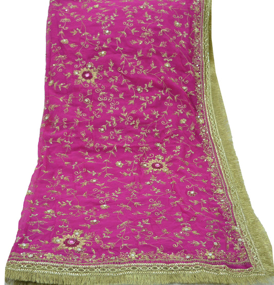Indian Vintage Heavy Pink Dupatta Pure Georgette Silk Long Stole Hand Embroidered Scarf Zari Zardozi