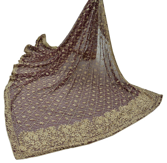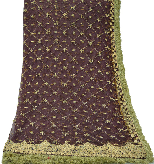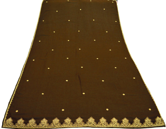 Indian Vintage Heavy Brown Dupatta Georgette Long Stole Hand Embroidered Scarf Zardozi/Dabka