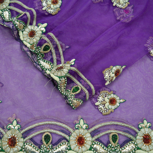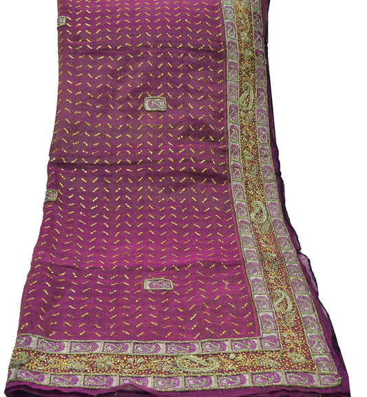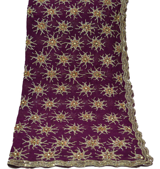 Indian Vintage Heavy Purple Dupatta Pure Georgette Silk Long Stole Hand Embroidered Scarf Zari Zardozi