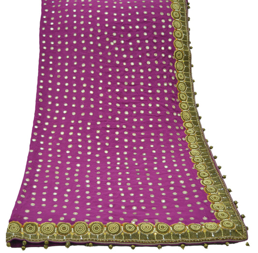 Indian Vintage Heavy Dupatta Purple American Georgette Long Stole Golden Gota Patti Work Scarves Veil Soft