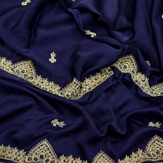 Indian Vintage Heavy Wedding Navy Blue Dupatta Pure Satin Silk Long Stole Hand Embroidered Scarves Golden Zardozi Stole Bridal Veil