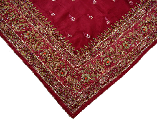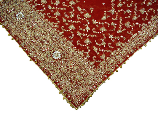 Indian Vintage Heavy Red Dupatta Georgette Long Stole Hand Embroidered Scarf Zardozi/Dabka