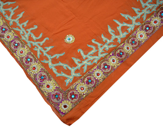 Indian Vintage Heavy Orange Dupatta Pure Georgette Silk Long Stole Hand Embroidered Scarf Zari Zardozi Bridal/ Wedding Veil Hijab