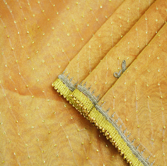 FREE SHIPPING Indian Vintage Heavy Orange Dupatta Net Mesh Long Stole Hand Embroidered Scarves Golden Zardozi Dabka Zari Sequins