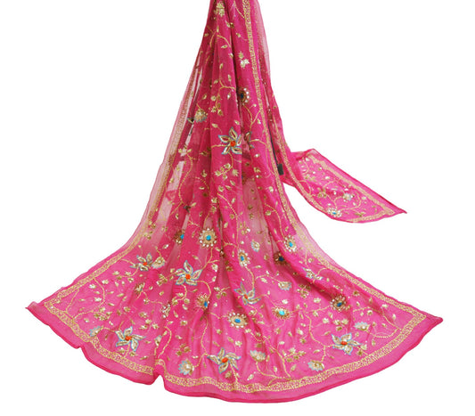 Indian Vintage Heavy Pink Dupatta American Georgette Long Stole Hand Embroidered Scarf Zari Zardozi Wedding Veil Bridal Hijab