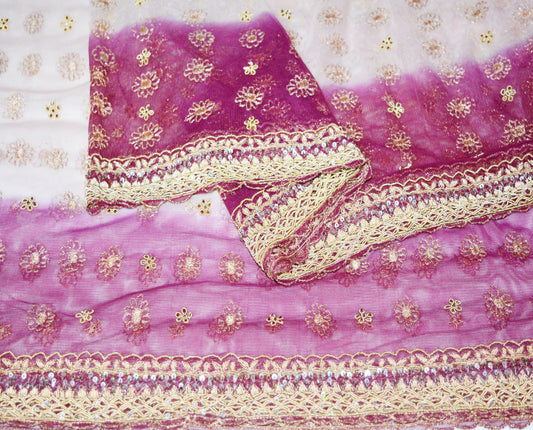 FREE SHIPPING Indian Vintage Heavy Pink Dupatta Net Mesh Long Stole Hand Embroidered Scarves Golden Zardozi Dabka Zari Sequins