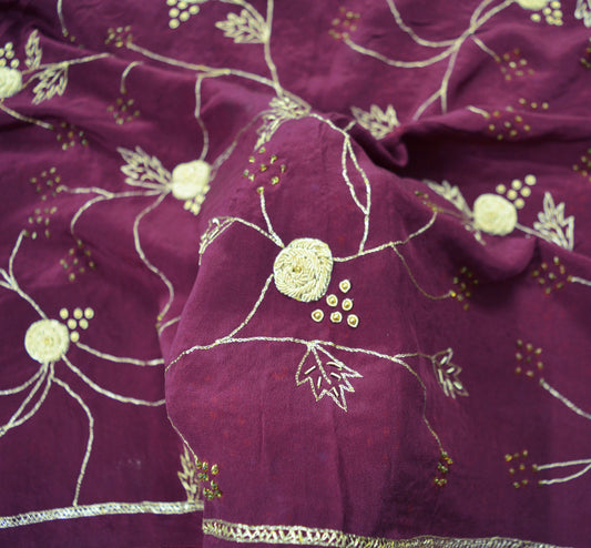 Indian Vintage Heavy Purple Dupatta Pure Georgette Silk Long Stole Hand Embroidered Gota Patti Scarf Zari