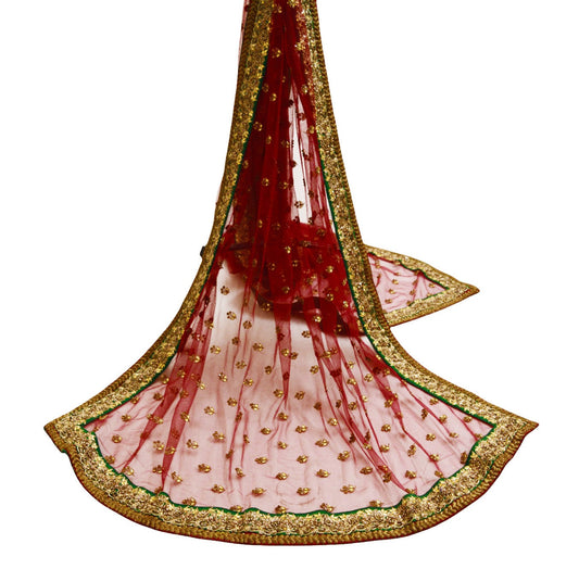 Indian Vintage Heavy Red Dupatta Net Mesh Long Stole Hand Embroidered Scarves Golden Zardozi Zari Sequins Stole Wedding veil