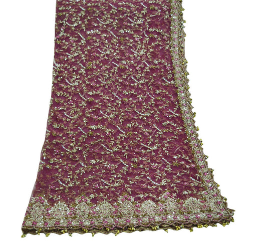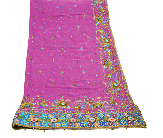Indian Vintage Heavy Purple Dupatta Pure Georgette Silk Long Stole Hand Embroidered Scarf Zardozi/Dabka Zari Sequins
