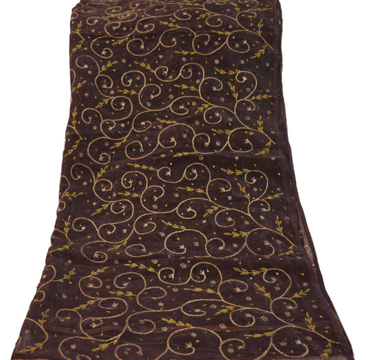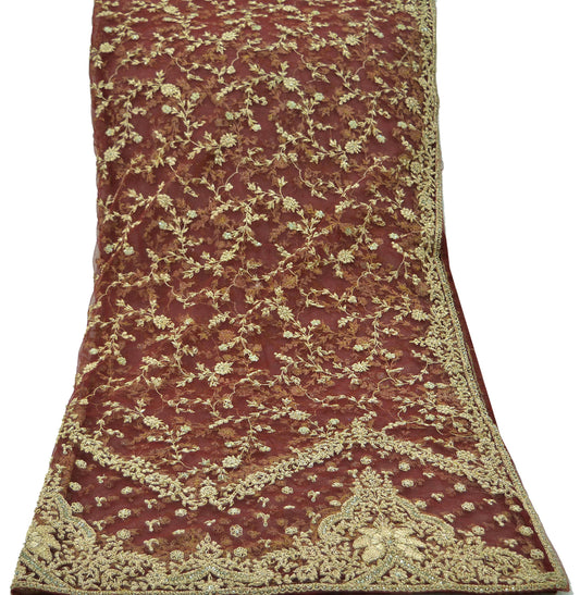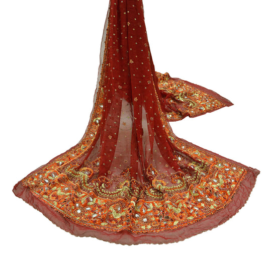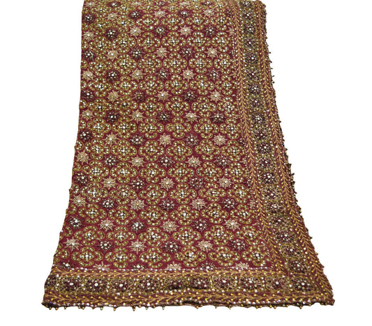 Indian Vintage Heavy Maroon Dupatta Organza Long Stole Hand Embroidered Scarves Zari Zardozi/Dabka Floral