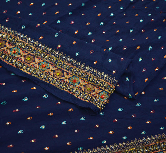 Indian Women Vintage Heavy Blue Dupatta Pure silk Long Stole Hand Embroidered Hijab Scarves Veil Wrap Zari