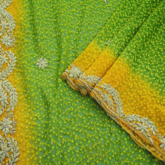 Indian Vintage Heavy Green Dupatta Net Mesh Long Stole Hand Embroidered Scarves Golden Zardozi Zari Sequins