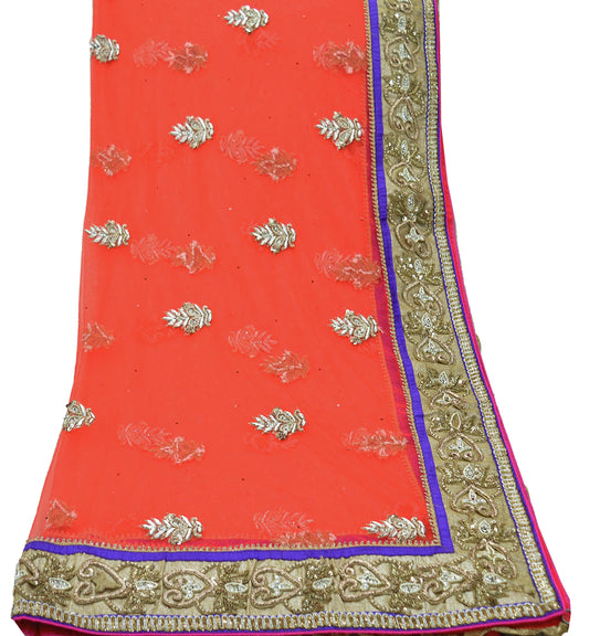Indian Vintage Heavy Bridal Pink Dupatta Pure Georgette Silk Long Stole Hand Embroidered Scarf Zardozi/Dabka Wedding red Hijab veil Boho