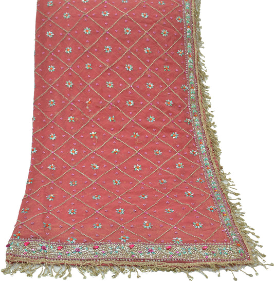 Indian Vintage Heavy Pink Dupatta Pure Crepe Silk Long Stole Hand Embroidered Scarves Dabka Zardozi Zari Stole