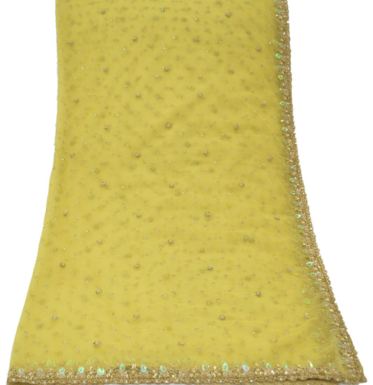 Indian Vintage Heavy Yellow Dupatta Net Mesh Long Stole Hand Embroidered Scarves Golden Zardozi/Dabka,Zari Sequins Hijab Veil wrap Boho