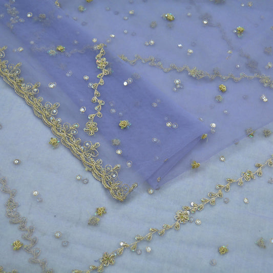Indian Vintage Heavy Purple Dupatta Net Mesh Long Stole Hand Embroidered Scarf Purple Zardozi Zari Sequins Stole