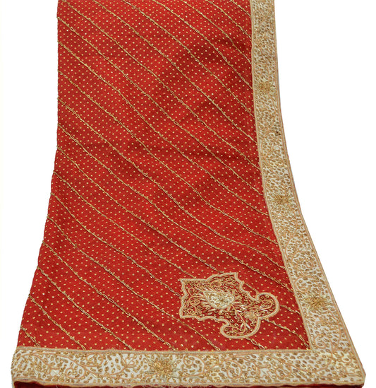 Indian Vintage Heavy Bridal Red Dupatta Pure Georgette Silk Long Stole Hand Embroidered Scarf Zardozi/Dabka Wedding red Hijab veil Boho