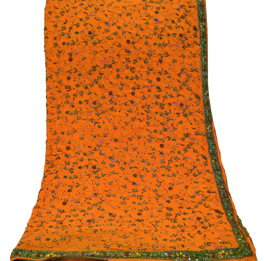 Indian Vintage Heavy Saffron Dupatta Pure Silk Long Stole Hand Embroidered Scarves Zardozi Bridal Veil Hijab