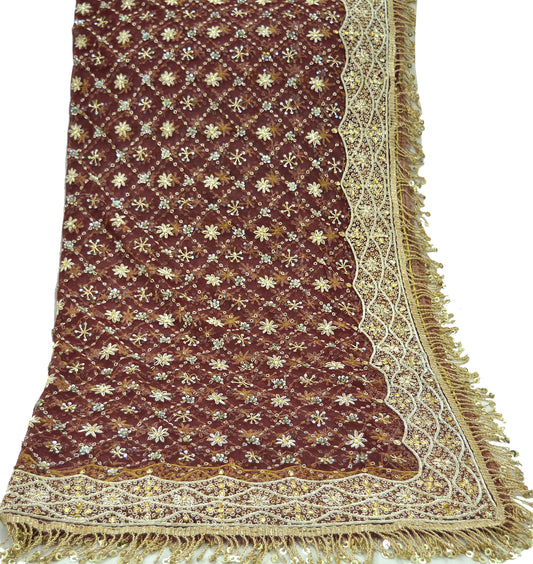 Indian Vintage Heavy Maroon Dupatta Net Mesh Long Stole Hand Embroidered Scarves Zardozi/ Dabka Zari Sequins Veil Bridal/ Wedding Hijab