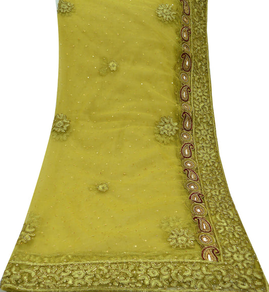 Indian Vintage Heavy Neon Green Dupatta Net Mesh Long Stole Hand Embroidered Scarves Golden Zardozi Zari Glass Beaded Stole